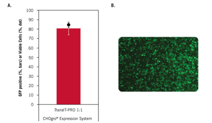 圖1. 單獨(dú)使用Mirus CHOgro? High Yield Expression系統(tǒng)中的轉(zhuǎn)染試劑(TransIT-PRO? 轉(zhuǎn)染試劑),也有著高水平的轉(zhuǎn)染效率。