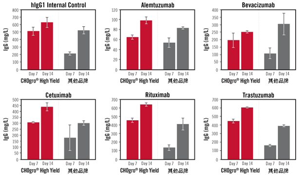 Mirus CHOgro? High Yield Expression System針對(duì)不同類型蛋白/抗體的表達(dá),有著更高產(chǎn)量