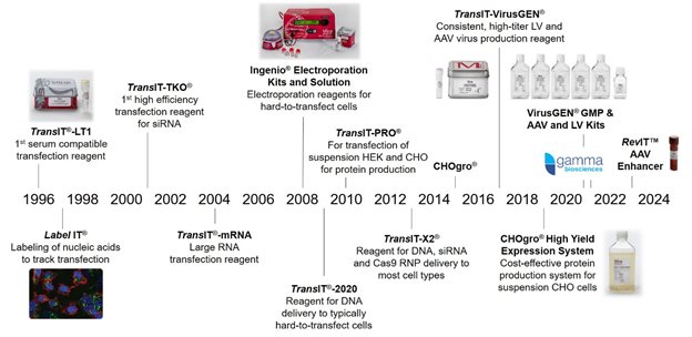 ? ? ? ?美國(guó)Mirus公司成立于1995年,是世界上很早開(kāi)發(fā)高效、低毒轉(zhuǎn)染試劑的公司,同時(shí)也是該類試劑的主要供應(yīng)商之一。其產(chǎn)品線涵蓋化學(xué)轉(zhuǎn)染試劑、電轉(zhuǎn)染產(chǎn)品、病毒生產(chǎn)和轉(zhuǎn)導(dǎo)產(chǎn)品,適用于基因功能研究、蛋白生產(chǎn)、病毒載體生產(chǎn)和動(dòng)物模型構(gòu)建等領(lǐng)域。Mirus被公認(rèn)為轉(zhuǎn)染試劑開(kāi)發(fā)的領(lǐng)跑者,其許多杰出成果獲得世界公認(rèn)與廣大用戶的好評(píng)。