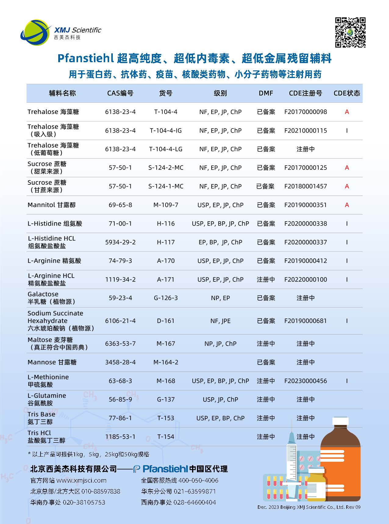 If you are interested in Pfanstiehl’s D-Mannitol (M-109-7), please contact Beijing XMJ Technology Co., Ltd., the authorized distributor of Pfanstiehl in China, to obtain the following detailed product overview documents. You are also welcome to contact us to request test samples.