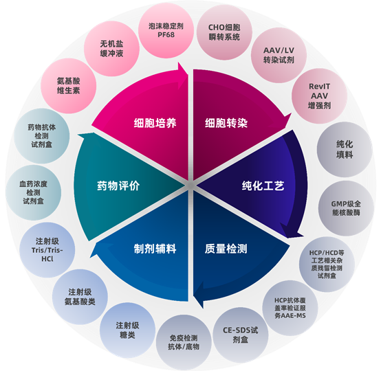 Over the 18 years since its establishment, XMJ has diligently and practically integrated high-quality global resources, and provided customers with a wealth of professional products and services. These include basic components of cell culture media, GMP-grade transfection reagents, various pharmacopoeia-grade biochemical reagents, purification fillers, GMP-grade nucleases, HCP/HCD detection kits, detection kits for residual impurities in bioprocesses such as Protein A/BSA/MVM, protein characterization analysis kits, injectable pharmaceutical excipients, antigens/antibodies/substrates, as well as applicability verification services for host protein residue detection kits and exclusive kit development services. These products and services meet the one-stop needs from R&D to production in aspects such as cell culture, transfection, purification process, quality control, preparation and drug evaluation.