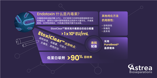 This article will recommend Etoxiclear? chromatography medium from Astrea Bioseparations (UK). It is a high-performance, non-ion-exchange, synthetic affinity chromatography adsorbent that enables cost-effective and efficient endotoxin removal. Supporting GMP-compliant production, Etoxiclear? is available in two product forms—gel media and single-use pre-packed columns—to meet diverse process requirements.