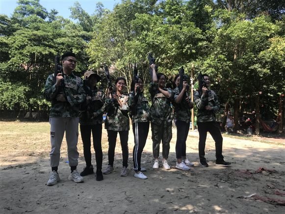 彷佛感受到西美杰人的高漲的士氣,活動當天陽光明媚,偶有微風(fēng)徐徐,讓人心曠神怡,作為活動重頭戲“真人CS”在正式開始之前雙方就已經(jīng)劍拔弩張。