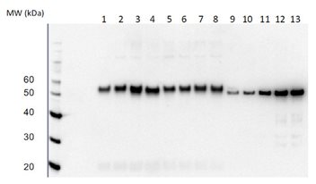 Rubisco(核酮糖-1,5-二磷酸羧化酶)是光合作用中決定碳同化速率的關(guān)鍵酶,同時(shí)也是植物光呼吸的關(guān)鍵酶。從紫色細(xì)菌到植物,它的同源性已經(jīng)得到了證實(shí),并且由兩個(gè)蛋白質(zhì)亞基組成,每個(gè)亞基有8個(gè)拷貝。在植物和綠藻中,大亞基(~55KDa)由葉綠體rbcl基因編碼,小亞基(15kDa)由核rbcs基因家族編碼。Agrisera的Rubisco相關(guān)抗體已驗(yàn)證可與多種植物和藻類有反應(yīng)性,如擬南芥、芹菜、青蒿等。